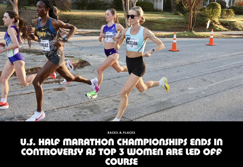 上个周末,美国半程马拉松锦标赛在亚特兰大举行。据美国跑步媒体《Runner’s World》报道,在女子组的比赛最后阶段,由于赛事主办方的失误,比赛现场一度出现混乱。赛事官方引导车在距离终点处还有大约3公里的位置开始偏离赛道,导致领先集团的三位女选手多跑了超过800米的距离,最终都无缘领奖台。